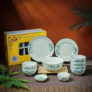• Kỹ Thuật Vẽ Tay Dưới Men: Thổ Tú tập trung vào dòng sản phẩm sử dụng kỹ thuật vẽ tay dưới men, đặc trưng bởi các họa tiết truyền thống (Sen Xanh, Chuồn Trúc). Ưu điểm của kỹ thuật này là họa tiết được bảo vệ vĩnh viễn, không bị phai mờ, bong tróc.Mua Bát đĩa Bát Tràng ở đâu